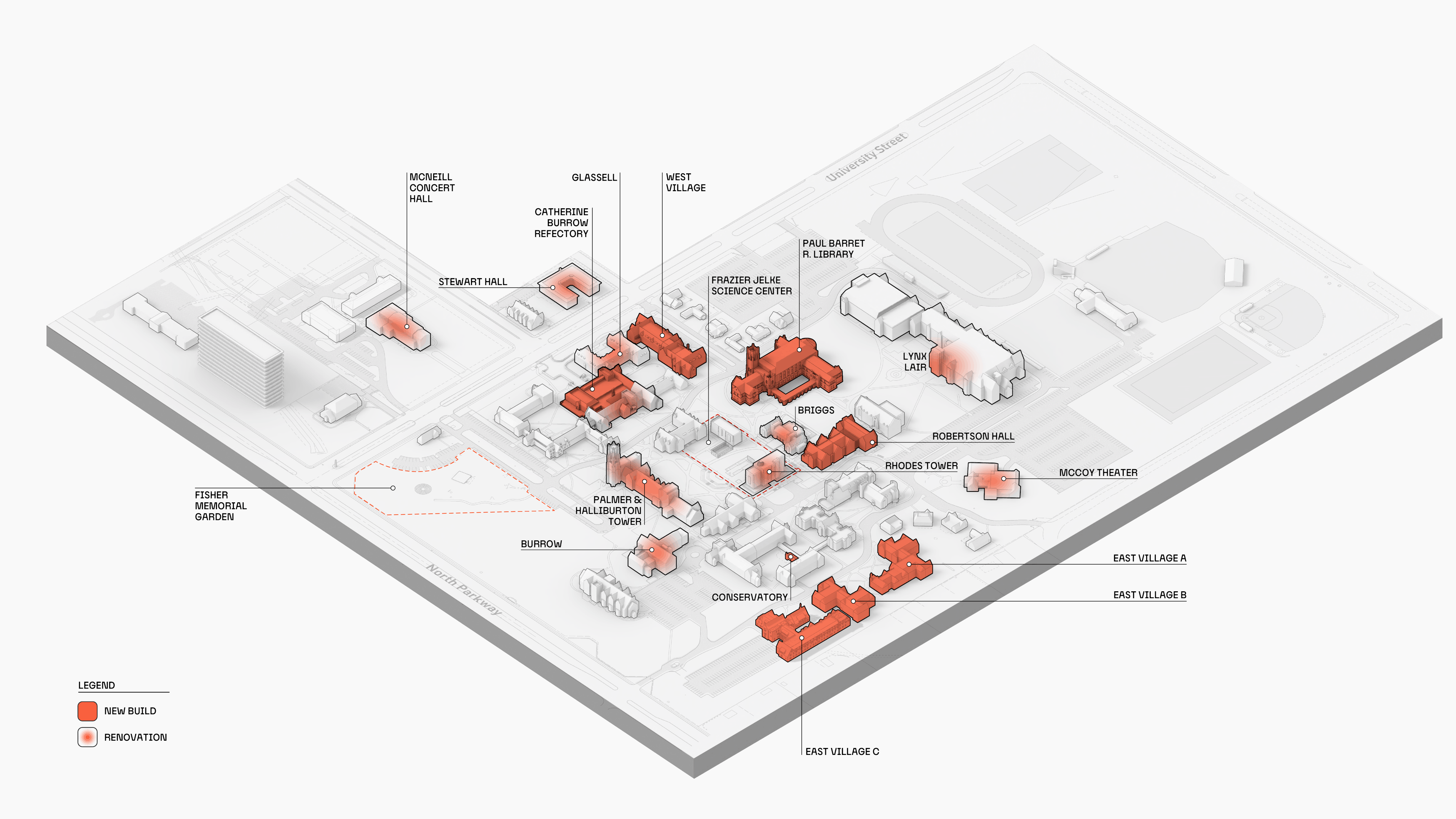The buildings of Rhodes College constitute one of the finest expressions of the Collegiate Gothic style and are expressive of its liberal arts mission. In 2001, Hanbury provided guidelines that positioned Rhodes College to meet its evolving needs while preserving this unique character. The plan anticipated siting for new buildings, illustrated concept development including site diagrams and building programs for future facilities, identified land use and open space patterns, strategized key contributions to the campus fabric and planning features, and addressed parking issues. A landscape master plan was also part of the scope of work. In 2013, the College tasked Hanbury with updating the master plan in anticipation of a new residence hall, additional teaching and lab space for the Biology and Chemistry departments, and general classroom space. As a result, not only is the campus more vibrant, but campus space across the board is much more efficiently utilized.