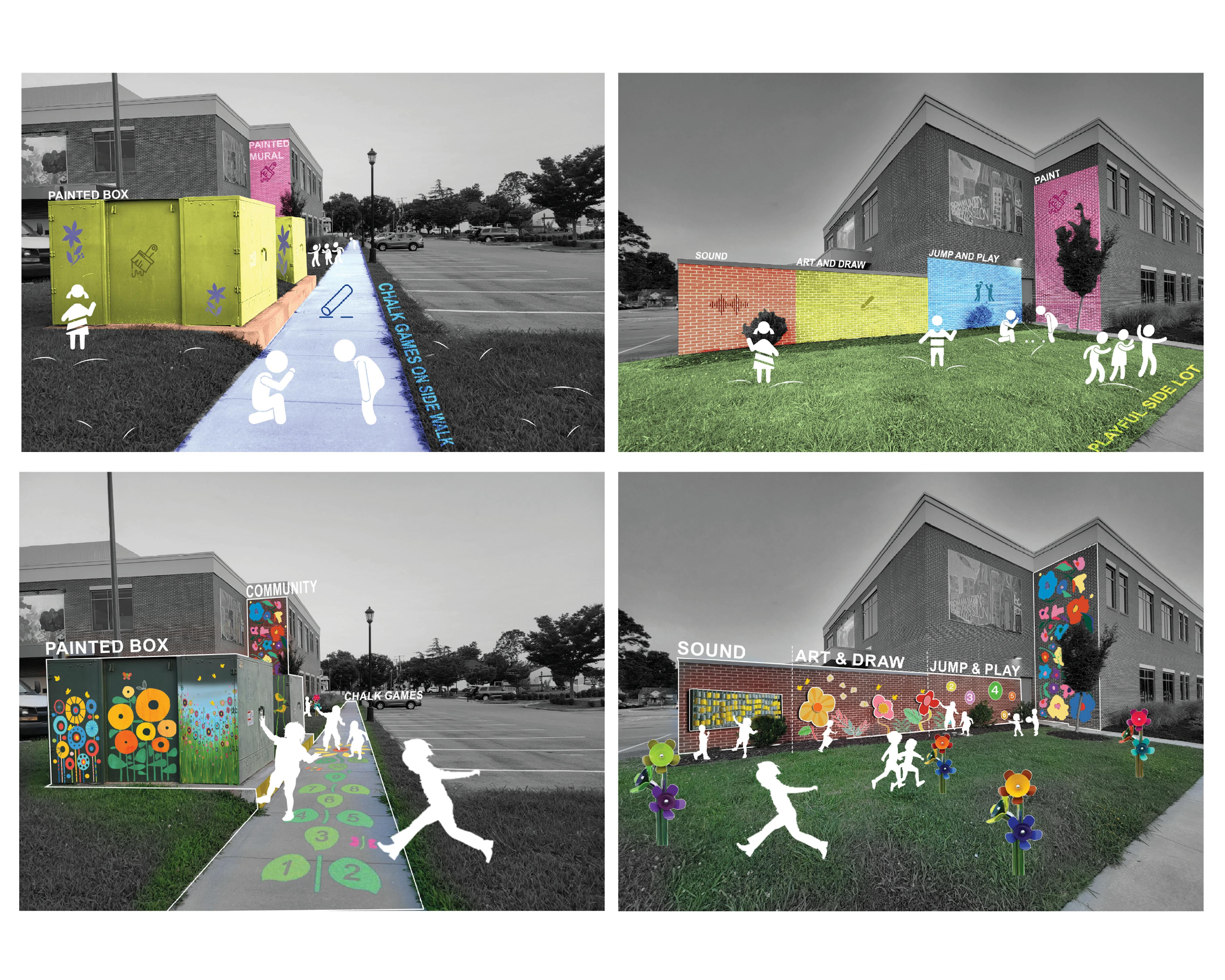 For this year’s project, AIA CoVA partnered with ForKids, a local nonprofit that supports homeless families and children through housing, education, and essential services. This collaboration allowed us to engage deeply with the South Norfolk community and gain valuable insights into trauma-informed design. By creating vibrant and joyful spaces, our pop-up park aims to provide a safe haven for children who have experienced homelessness, enhance community well-being, and inspire lasting positive change.