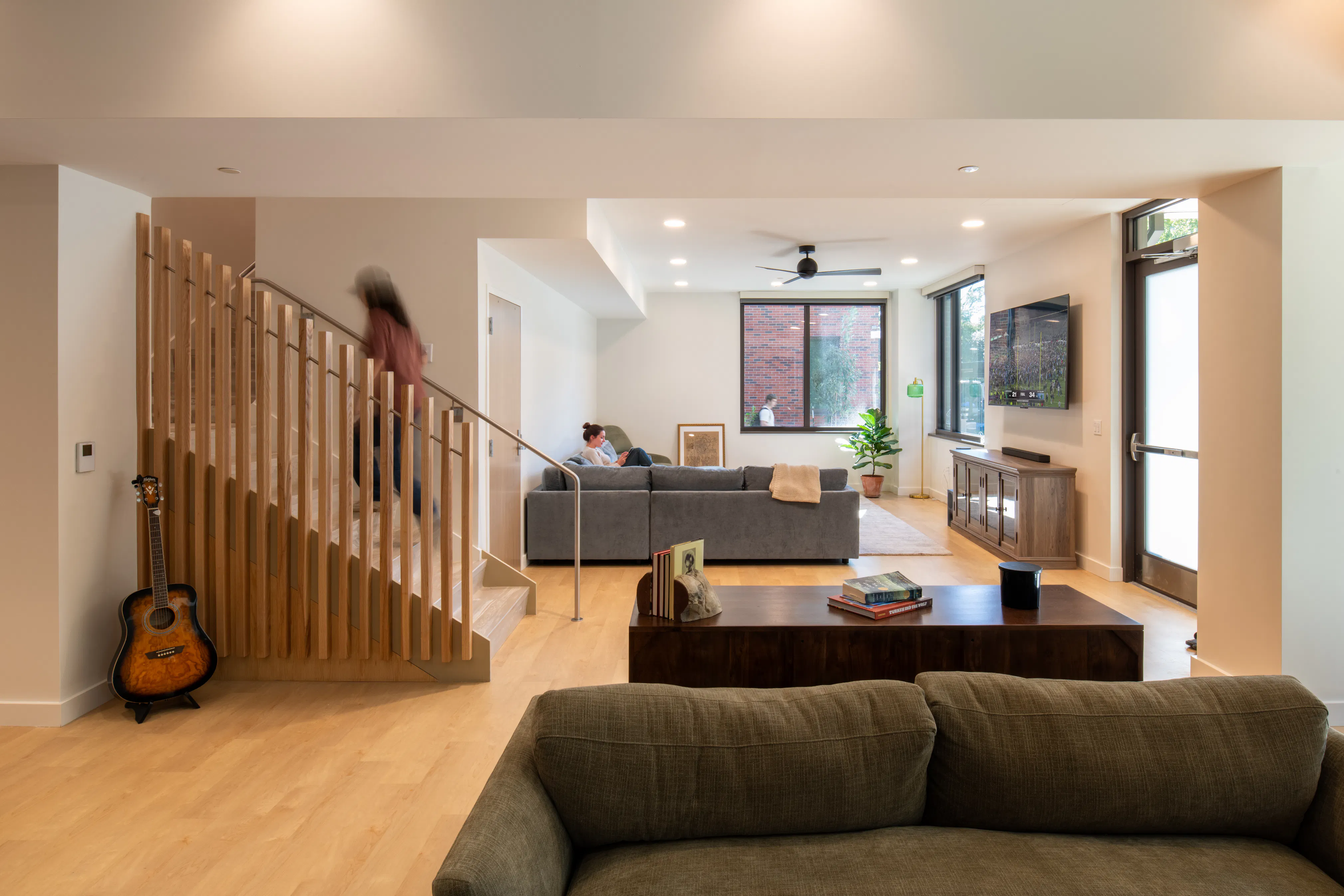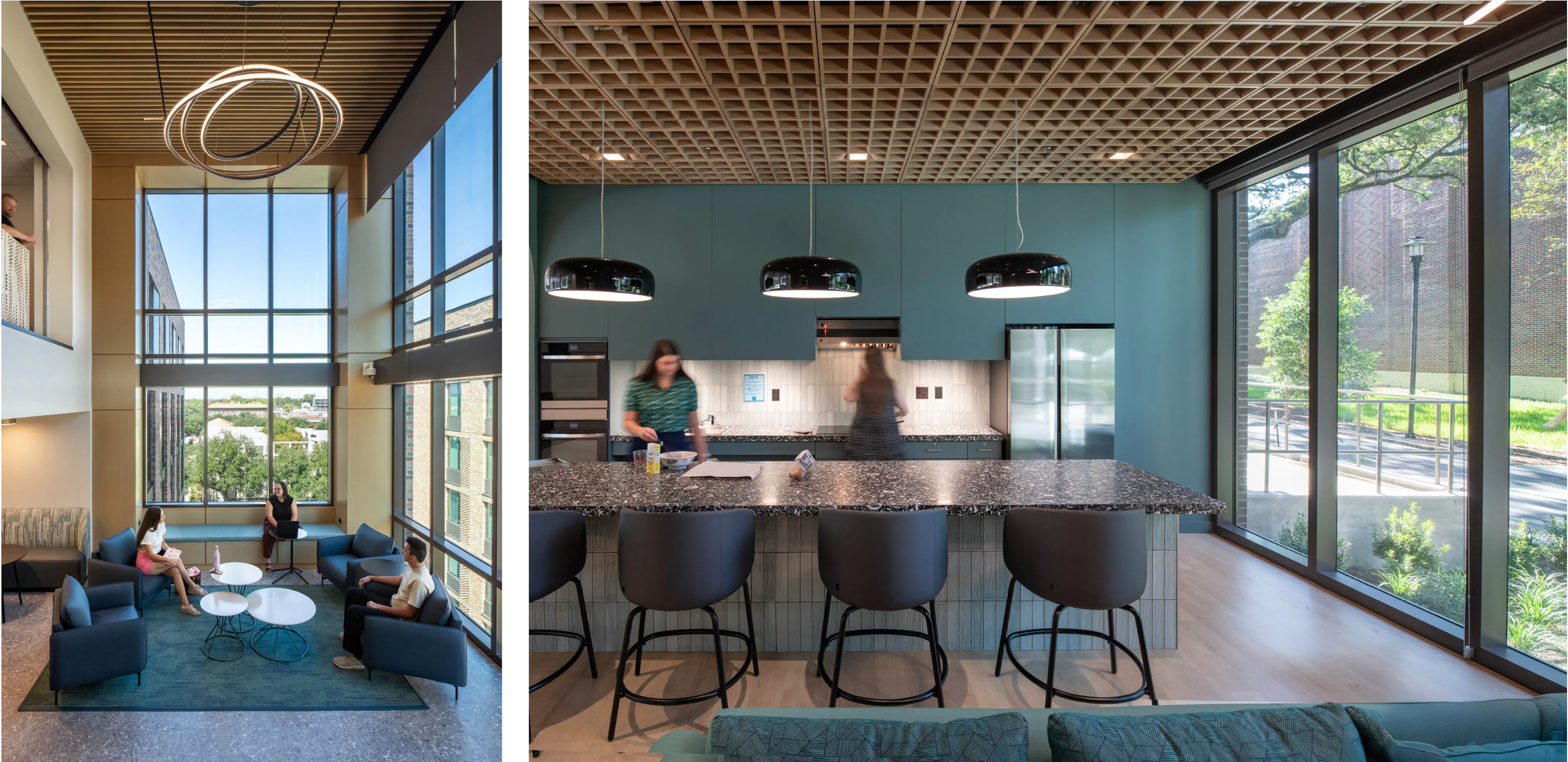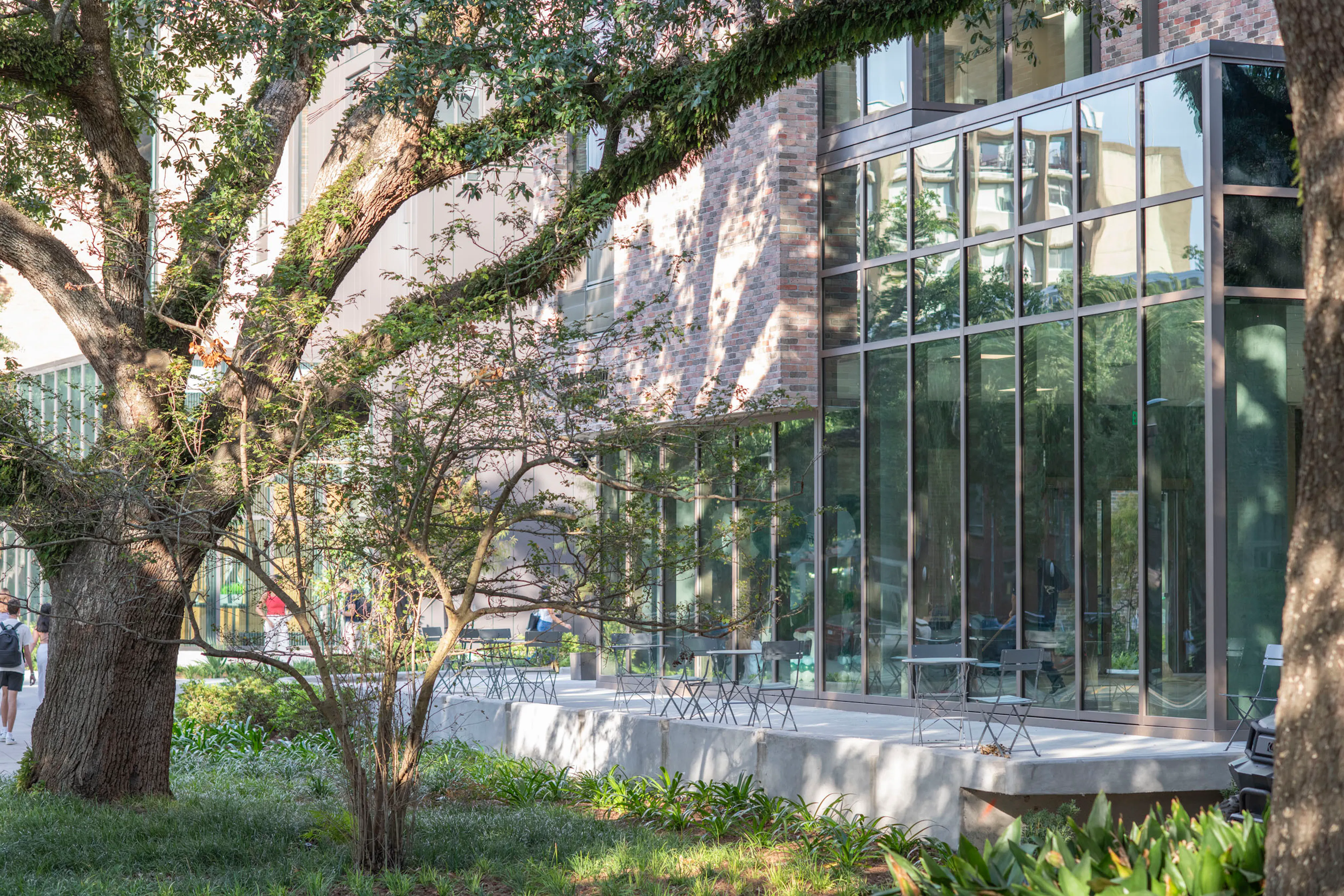 The hall is home to more than three hundred residents, with a Tulane professor in residence embedded in the community as a daily presence. The ground floor is a network of spaces for study, socializing, and recreation, designed to complement the larger community hub established in Phase I.