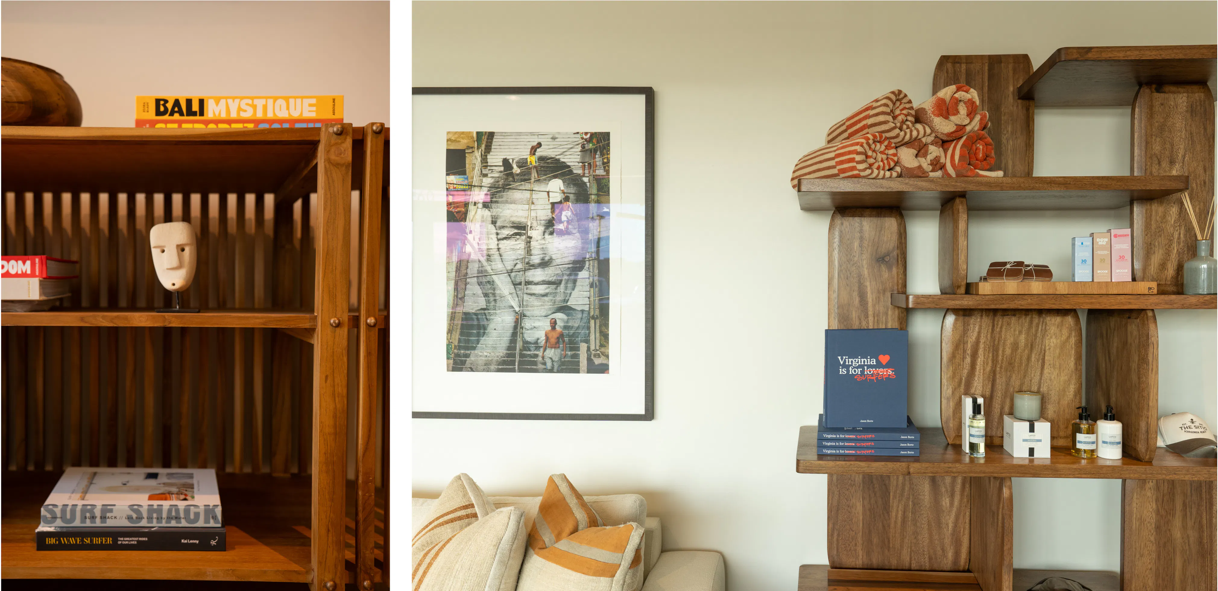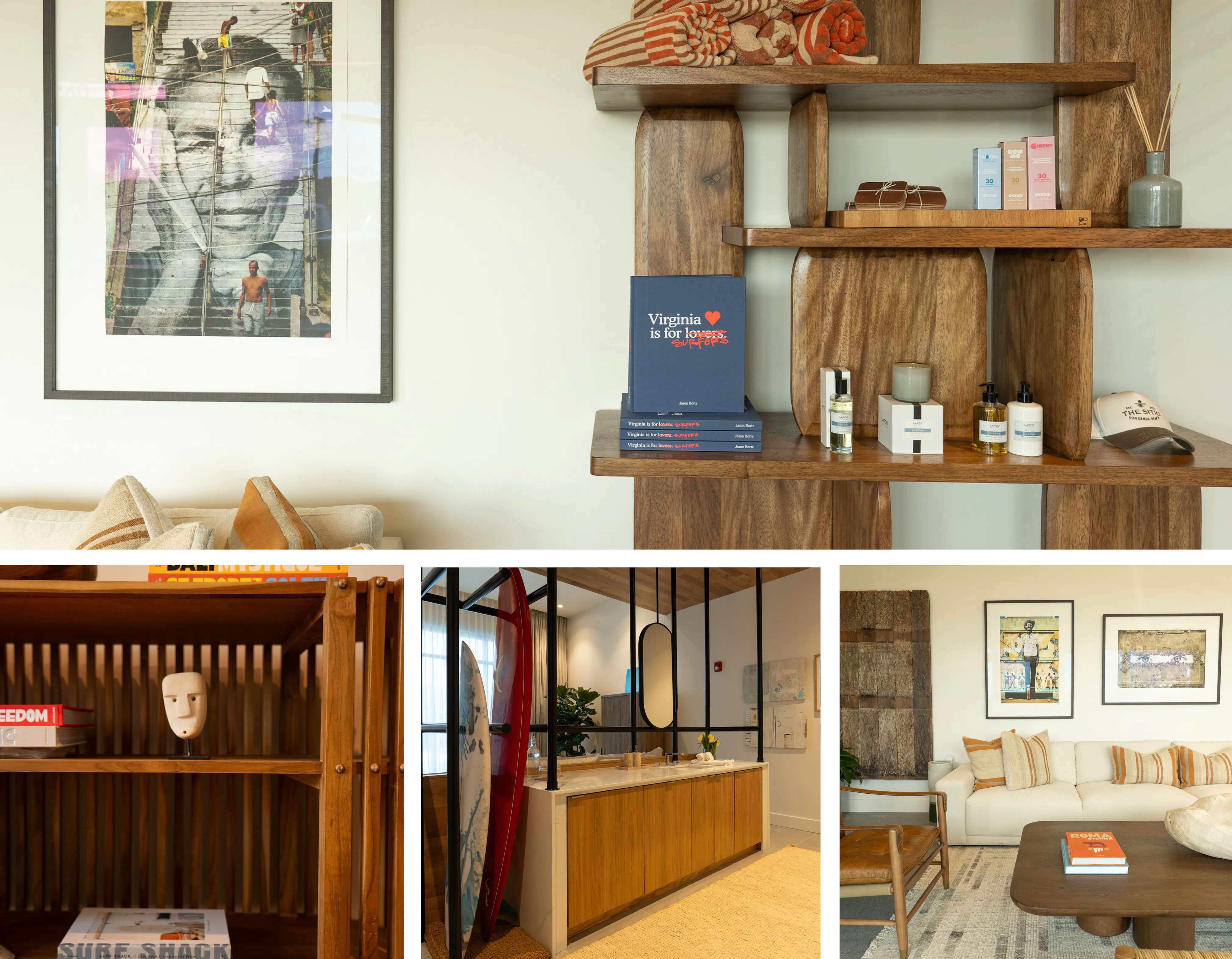 A front desk carved from a tree reclaimed during the district's construction. Playlists developed with Pharrell Williams' team, introducing guests to new artists during each stay. An art program that showcases work by local makers alongside internationally recognized names. Every choice inside a deliberately small hotel belongs to a specific coast, a specific town, a specific creative community.