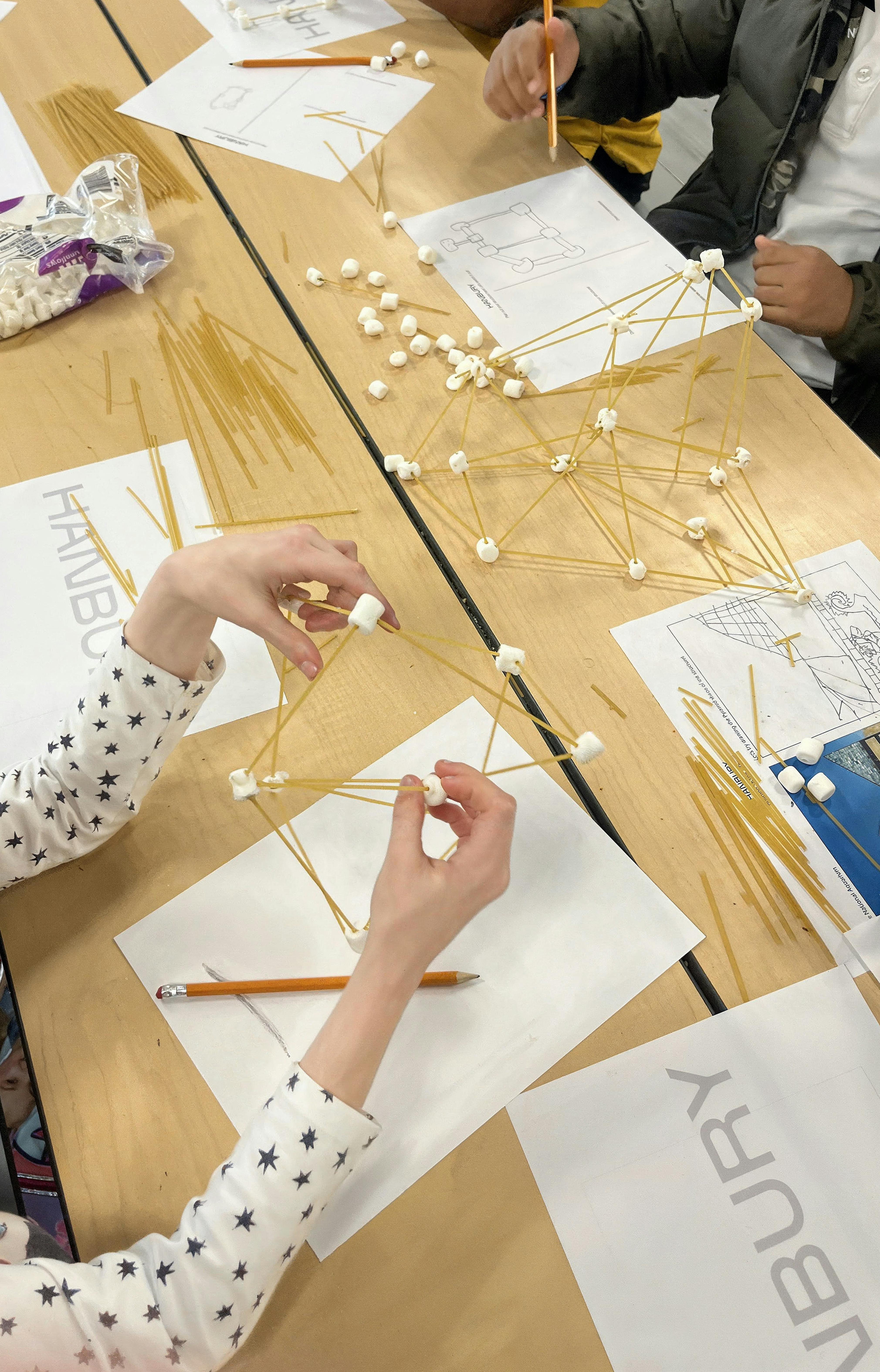 Structure: Constructing DIY structures with marshmallows and spaghetti to understand form and structural integrity.