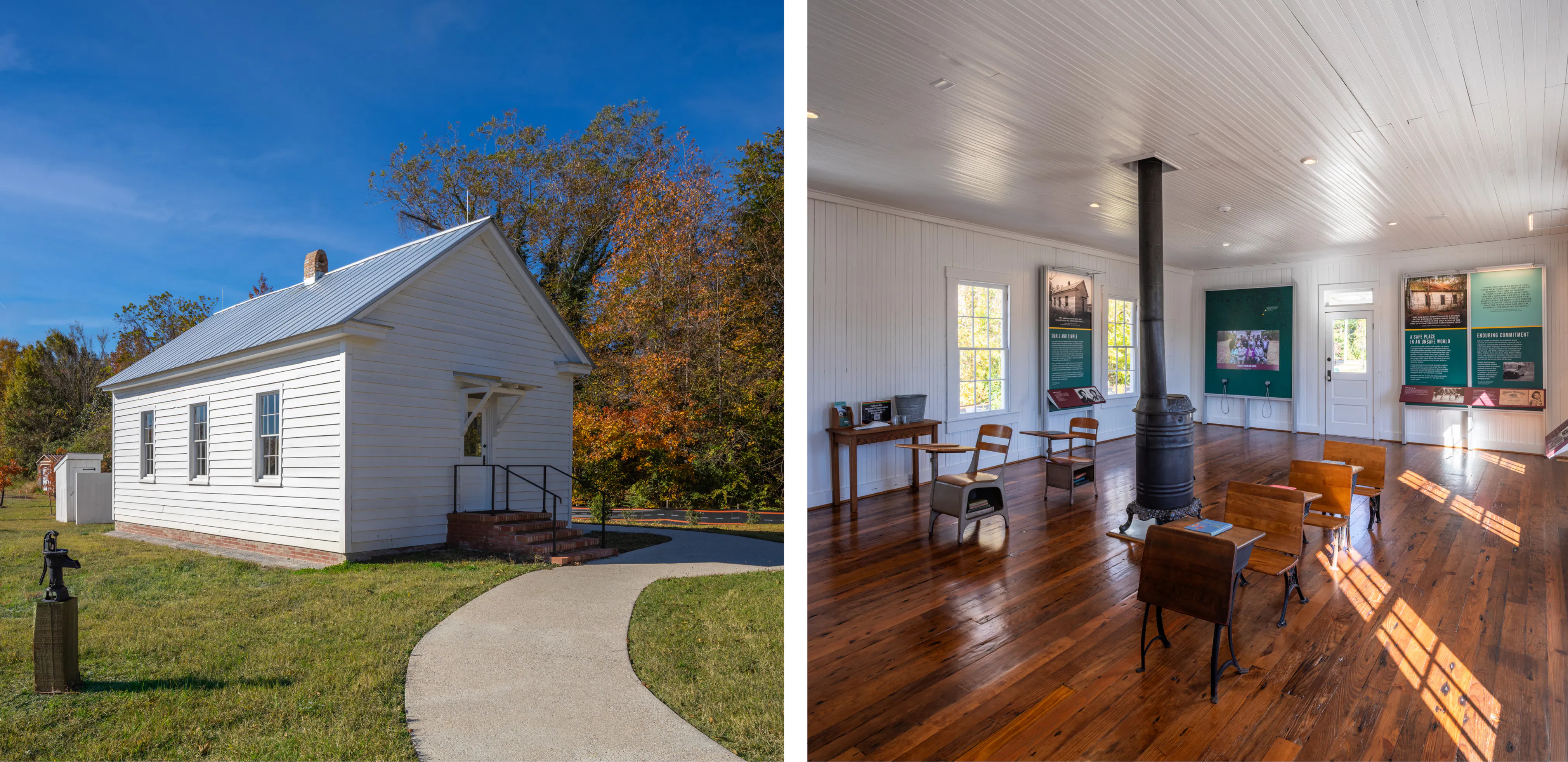 We recently restored a 19th century one-room African American schoolhouse in a historic park. The goal was not just to preserve it but to honor its origins and represent the way it would have looked and felt when the school closed 75 years ago.