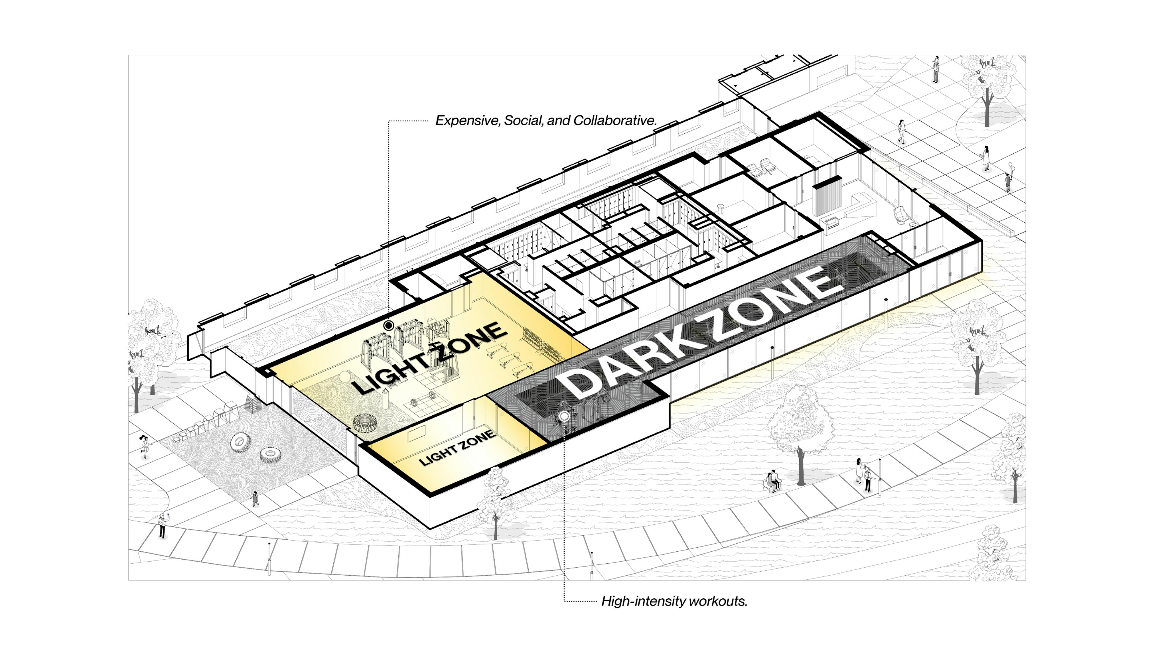 As a programmatic extension of the sPARK Life Sciences campus in Morrisville, NC, the Fitness Center consolidates spaces for training, recovery, and social interaction along a singular circulation axis. The facility responds to the operational requirements of a contemporary workplace, integrating wellness as an infrastructural element within the campus.