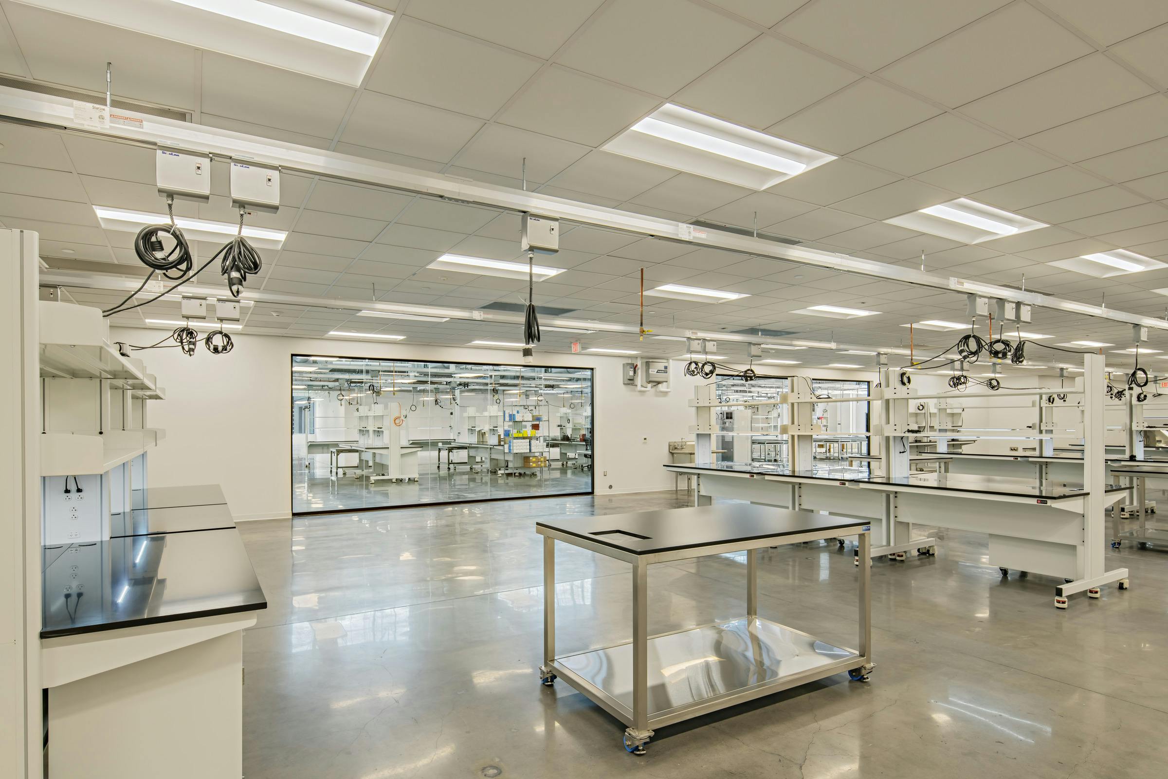 The facility not only revitalizes a once-dormant retail space but also sets a precedent in sustainable development. Designed to meet LEED Silver certification, the project’s sustainability measures feature a construction waste reduction of over 80% and utility systems engineered to minimize energy consumption, highlighting a commitment to thoughtful and sustainable building reuse. The design prioritizes flexibility, adaptability, and energy efficiency, integrating innovative systems like the Starline overhead power distribution to meet the evolving needs of laboratory configurations.